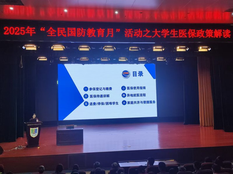 9月19日,财务处在学院大礼堂举办“大学生医保政策解读”专题宣讲会。连云港市医保中心冯琪琪科长受邀担任主讲人,2025级全体新生及相关教师到场参会。